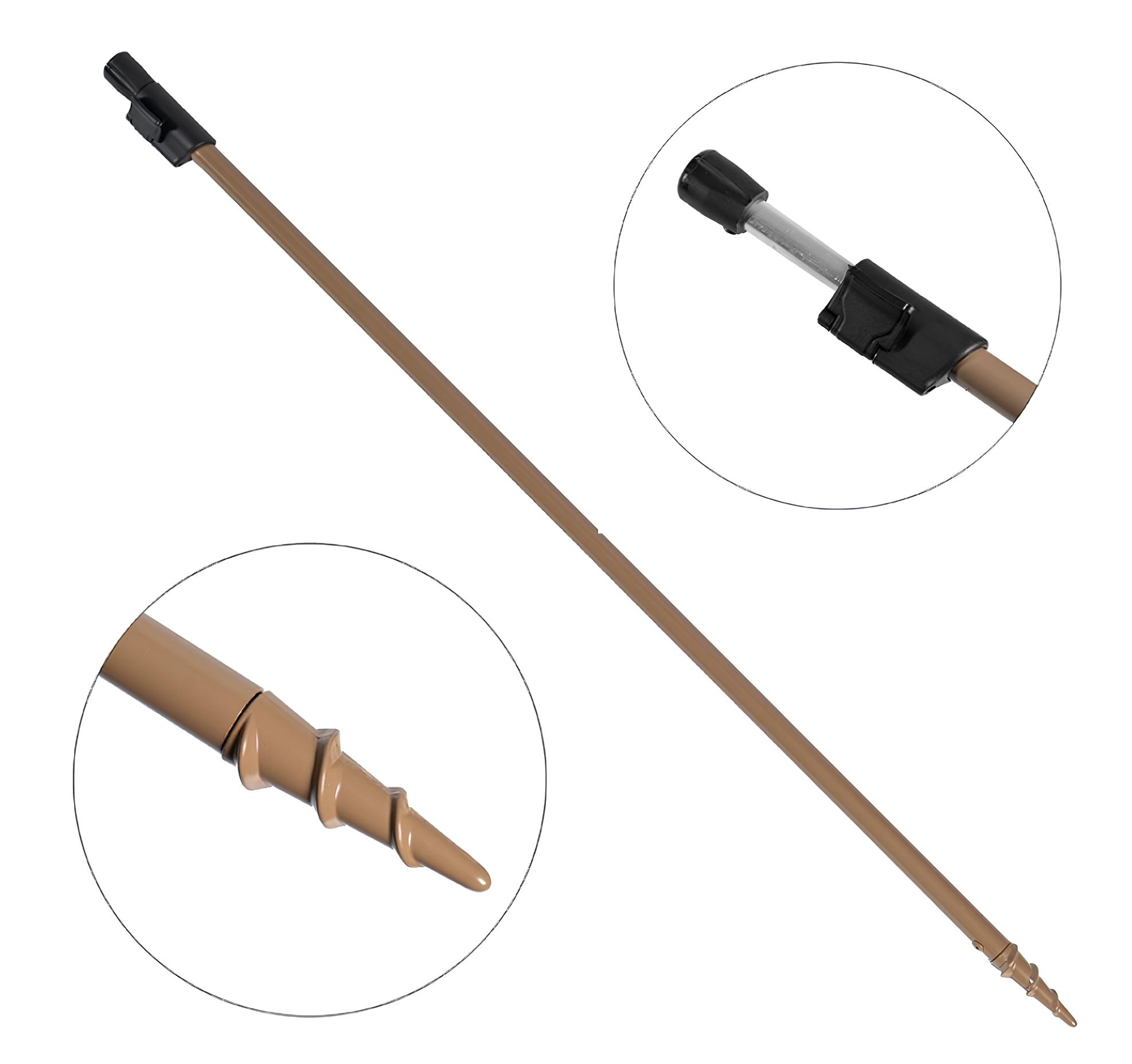 Обычные стойки представляют собой простые палки, которые втыкаются в землю. Сверху на них нарезана резьба, в которую ввинчиваются сигнализаторы или держатели. Резьба на стойках стандартная, поэтому при покупке можно не беспокоиться о совместимости с разными видами сигнализаторов и держателей. Лучше выбирать телескопическую стойку, чтобы иметь возможность дополнительно регулировать высоту расположения удилища. Для твердых грунтов существуют специальные стойки с широкой резьбой на конце, которые удобно завинчивать в землю, как винт-саморез. Обычные стойки доступны у всех производителей карпового снаряжения.