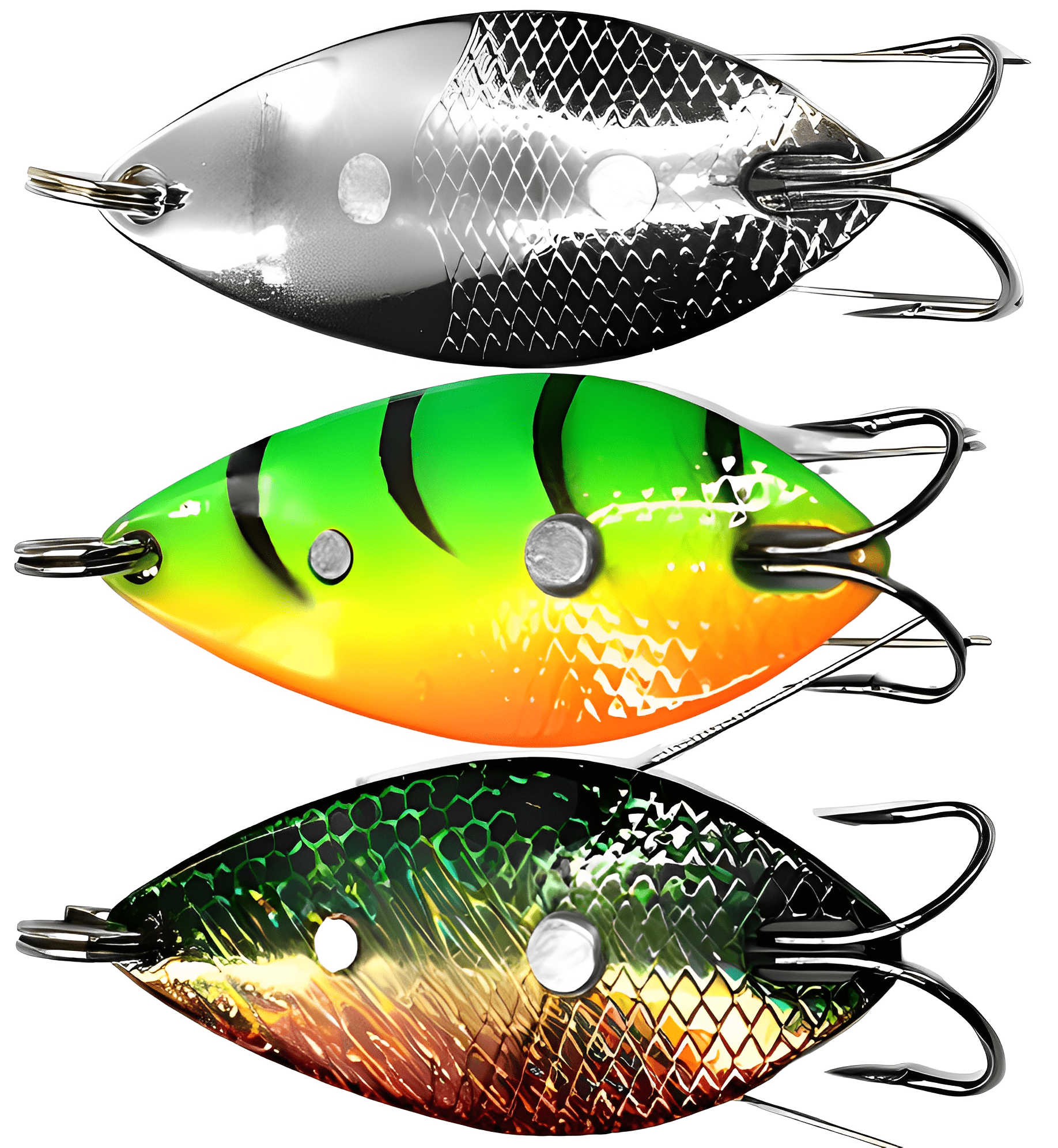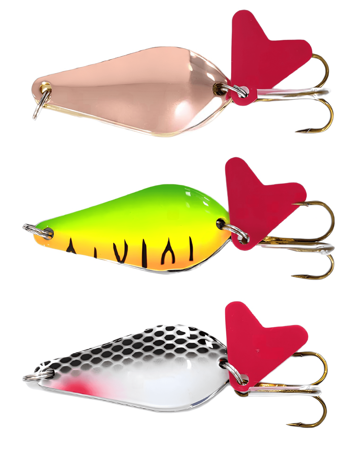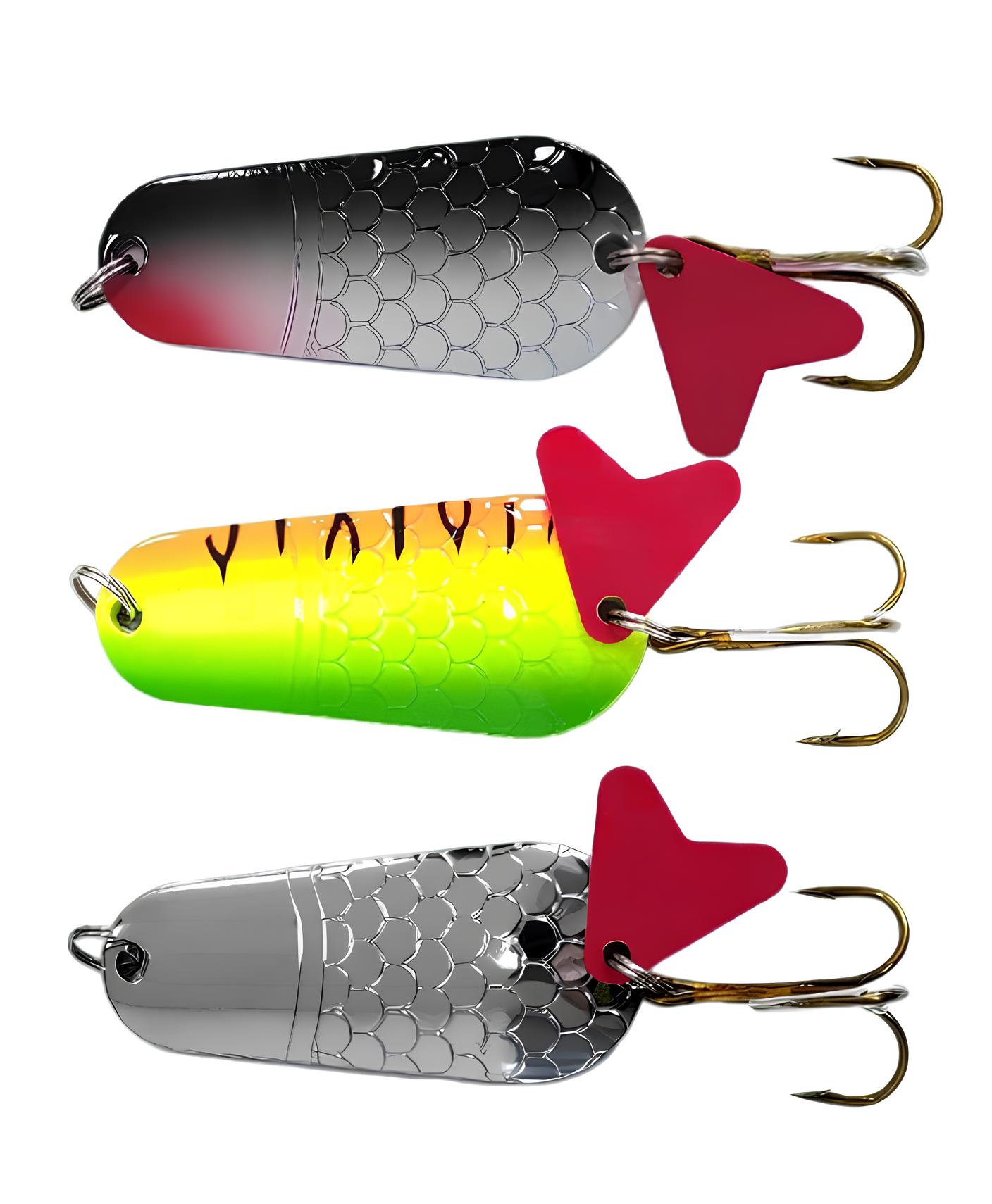 Колеблющиеся блесны отличаются разнообразием форм, но на некоторых из них можно увидеть дополнительные элементы, такие как плавники. Эти плавнички служат для стабилизации игры приманки как в поперечном, так и в продольном направлении, уменьшая вероятность срыва во вращение при активной проводке.