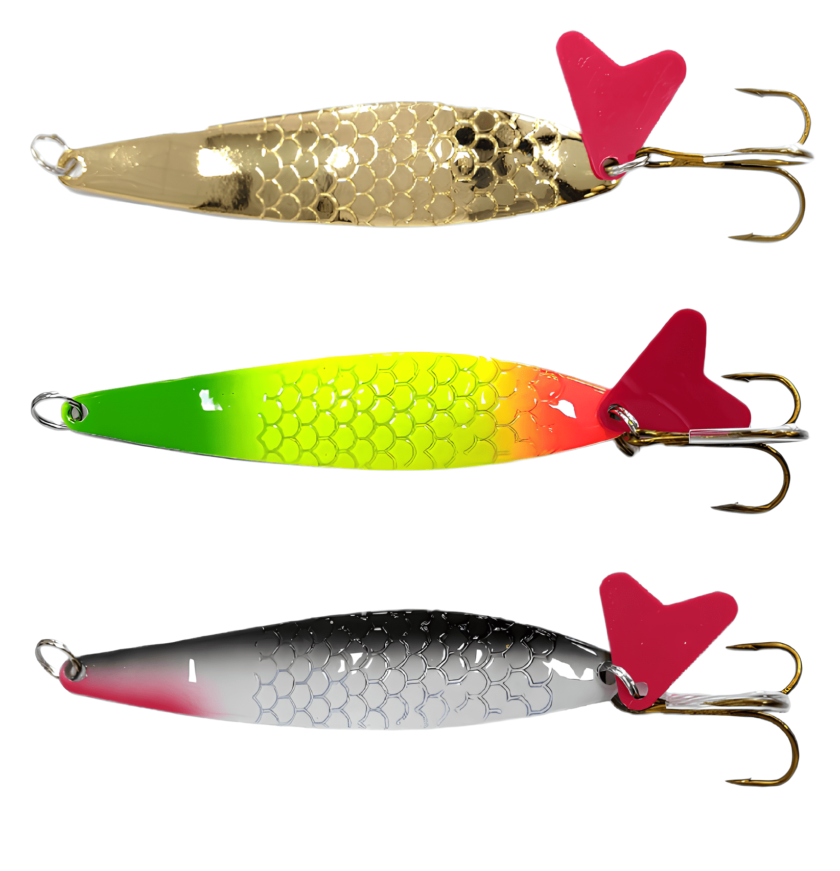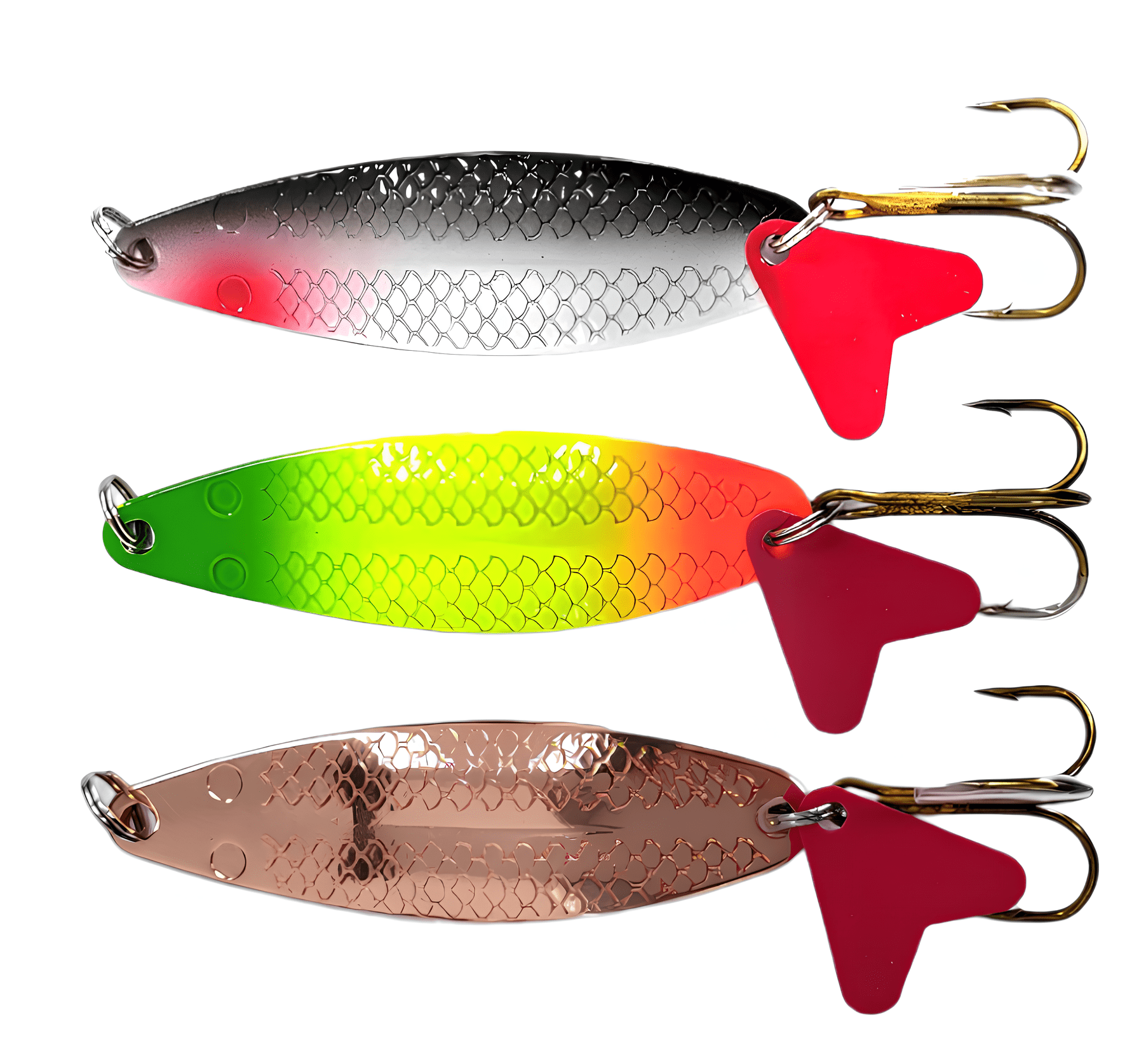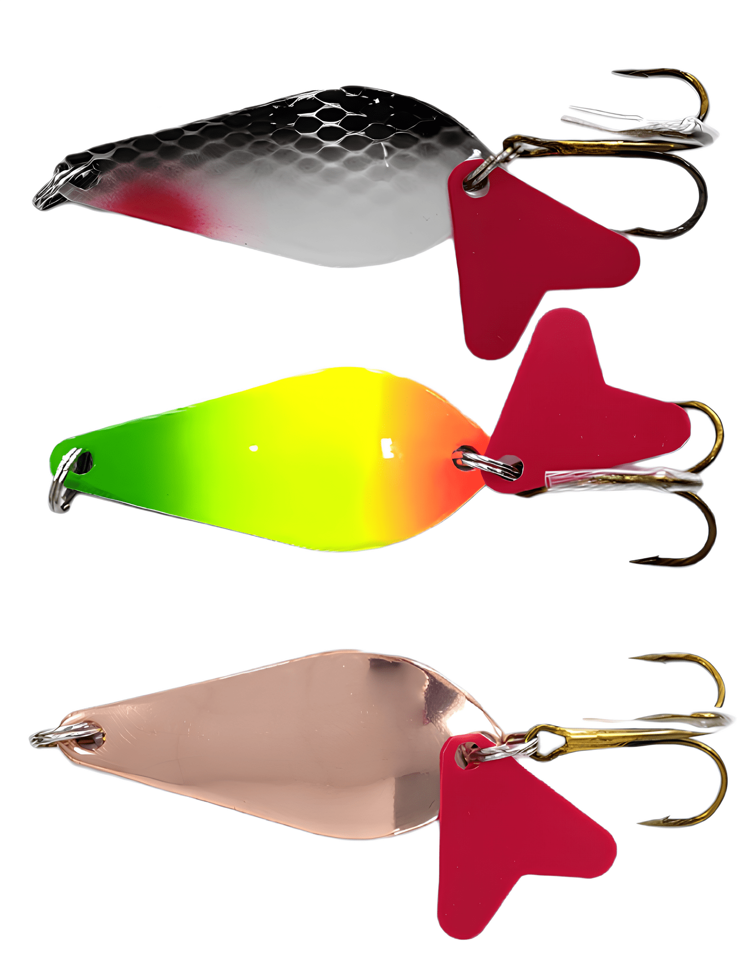 Колеблющиеся блесны отличаются разнообразием форм, но на некоторых из них можно увидеть дополнительные элементы, такие как плавники. Эти плавнички служат для стабилизации игры приманки как в поперечном, так и в продольном направлении, уменьшая вероятность срыва во вращение при активной проводке.