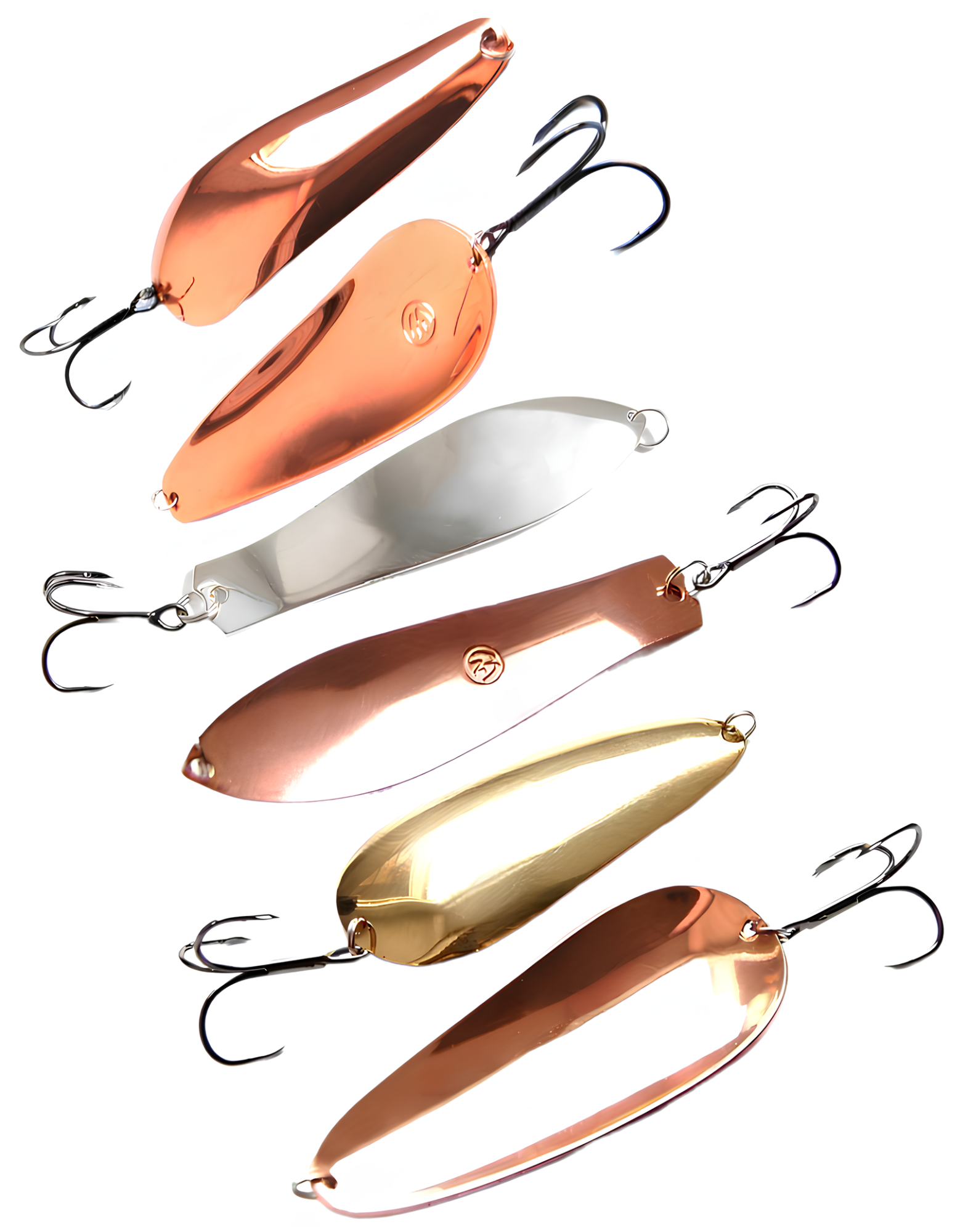 •  Плоские (классические) блесны. Изготавливаются из листового металла толщиной от 0,5 до 3,0 мм методом штамповки. Чем глубже штамповка, тем более стабильной становится игра блесны, хотя и менее активной по амплитуде. Плоские блесны легко играют, но они более склонны к срыву во вращение. Однако, игра во многом зависит от изгибов блесны. Чем больше продольных изгибов, тем устойчивее и активнее игра. Иногда даже небольшое различие в геометрии блесны существенно влияет на количество поклёвок. Выбор таких блесен индивидуален и зависит от предпочтений хищника в данный момент времени.