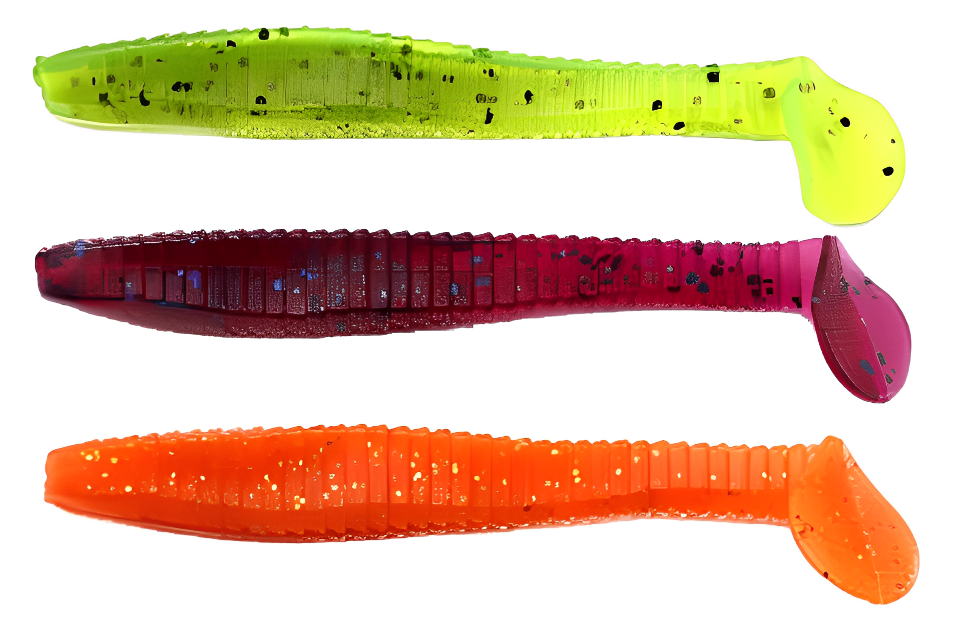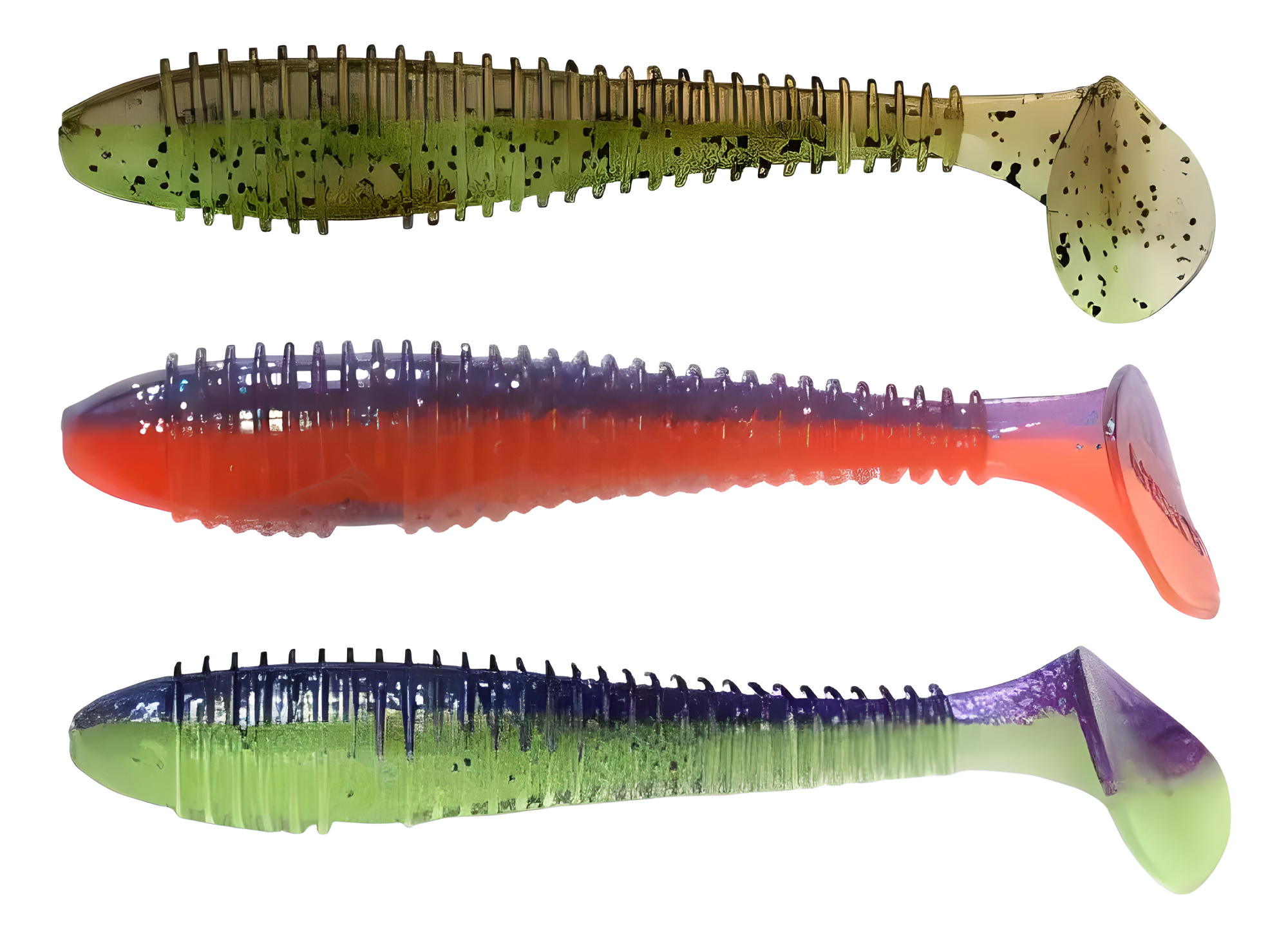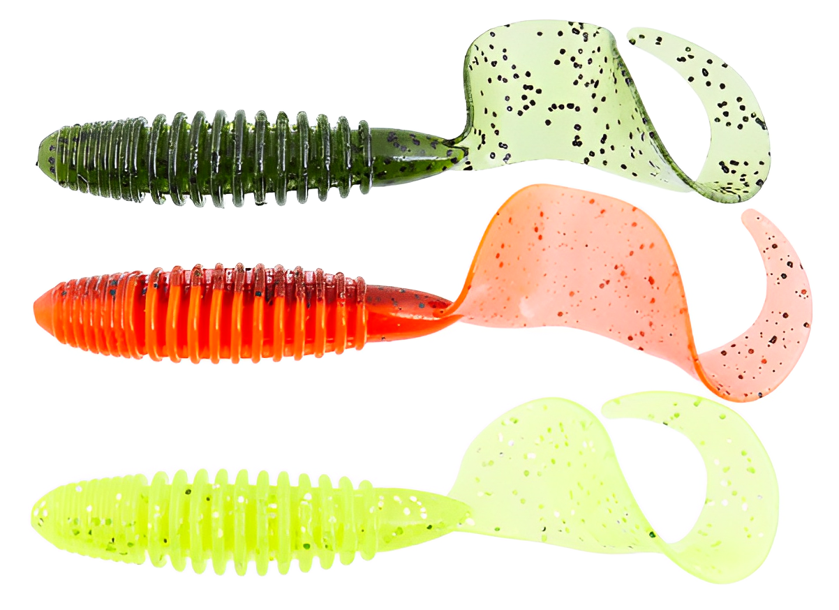 Твистеры — это активные приманки, отличающиеся цилиндрической формой тела, которое может быть тонким, объемным, коротким или длинным. Поверхность твистера может быть гладкой, с легким рельефом или ярко выраженной ребристостью, что создает дополнительные акустические эффекты во время проводки, привлекая хищников. Ключевой особенностью твистера является его хвост, который, словно вопросительный знак, изгибается и создает частые колебания. Размеры, толщина и степень изогнутости хвоста у разных моделей могут различаться, что влияет на характер игры приманки. Хищные рыбы издалека замечают эти вибрации и стремительно бросаются в атаку. Твистеры часто используются в сочетании с разнесенной оснасткой, дроп-шотом и отводным поводком, что позволяет разнообразить методы ловли.