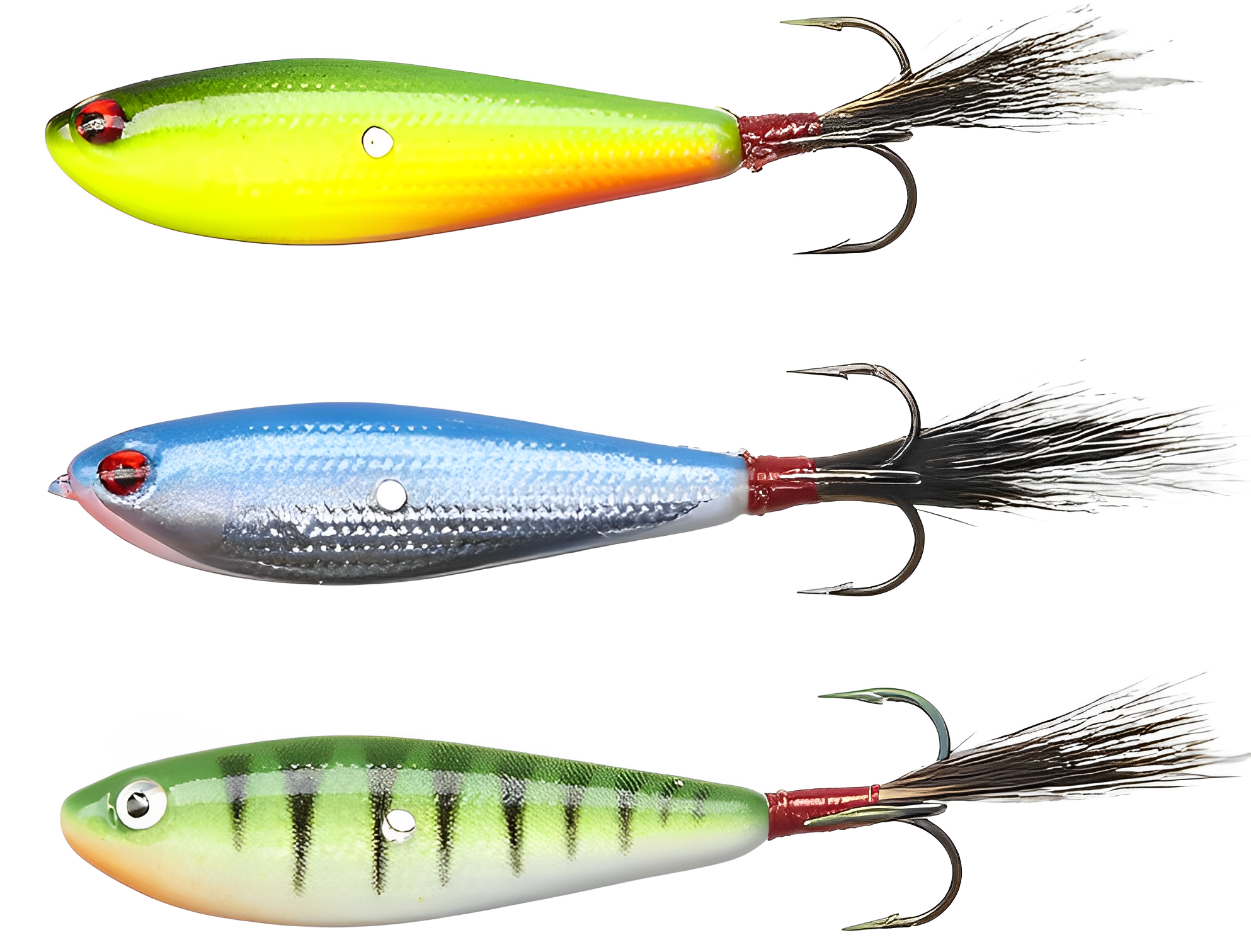 Эти приманки максимально точно, при правильной игре, имитируют движения мелкой рыбешки, которая движется из последних сил (раненой, больной). Такие мальки — первая цель для атаки хищника в процессе эволюции. Они работают даже в глухозимье, когда хищная рыба не может устоять от такой лёгкой добычи. Однако, такие варианты подходят только для глубин не более 5 метров, а лучше — до 3х. Подойдут только мелкие, узкие приманки весом до 5-7 граммов и длиной не более 5 см. Сфера их применения — прибрежные области, участки малых рек без течения и мелководные банки среди больших глубин. На такую приманку охотно отзывается любая хищная рыба, активная или пассивная. Из-за этих ограничений о таких балансирах пишут мало, но в описанных условиях лучше их нет. На большой глубине у лёгкой приманки не хватает энергии, чтобы преодолеть сопротивление толщи воды и лески. Её игра — повороты вокруг оси, падение на бок из верхней точки и возвращение в первоначальное положение, мелкие колебания даже при самой медленной проводке.